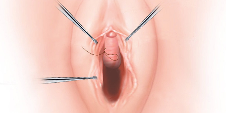 Cuối cùng, bác sĩ phẫu thuật sẽ đóng âm đạo bằng cách khâu các cơ âm hộ. và đặt một ống cao su nhỏ Để hút hết máu bên trong rồi khâu các cam nhỏ lại với nhau.